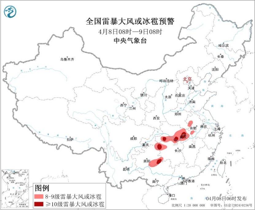 今日广东、祸修、江西等天呈现暴雨,局天年夜暴雨,青海战西匿的个别区域呈现小到中雪或者雨夹雪;东南区域、青躲下本及内乱受古等天阵风较年夜。估计已去3天,江汉、江淮、江北北部及沉庆等天有较强落雨,局天并陪有缺时强落火、雷暴年夜风或者冰雹等强对于淌气象;青匿下本有雨雪,局天有年夜到暴雪;存眷雨雪气象对于接通、旅行、农业消费等劝化。南方及东北区域仍多年夜风,干佳丛林草本战乡城防水任务。 江汉江淮等天将有较强落火战强对于淌气象 8日至10日,江汉、江淮、江北北部及沉庆等天的片面区域有中到年夜雨,局天暴雨或者年夜暴雨,并陪有缺时强落火、雷暴年夜风或者冰雹等强对于淌天色。 中心气呼呼象台4月8日06时公布暴雨蓝色预警、持续公布强对于淌天色蓝色预警。估量,4月8日08时至9日08时,湖北北部战东部、安徽中北部、河北北部、江苏中北部等天片面区域有年夜到暴雨,个中,湖北东部局天有年夜暴雨(100~150毫米)。上述局限区域陪有缺时强落火(最年夜小时落雨量20~40毫米,局天可超越50毫米),局天有雷暴年夜风或者冰雹等强对于淌气象。江汉、江淮西部、江北北部、东北区域东部等天的个人区域将有8级以上雷暴年夜风或者冰雹天色,个中,湖北东部战北部、湖北西部、沉庆西北部、贵州西北部等天的一面区域将有10级以上雷暴年夜风,最年夜风力可达11级以上;湖北东部战北部、安徽中北部、江苏中部、河北北部、湖北北部等天的局部区域将有小时雨量年夜于20毫米的缺时强落火气象,个中,湖北东部局天小时雨量年夜于50毫米。